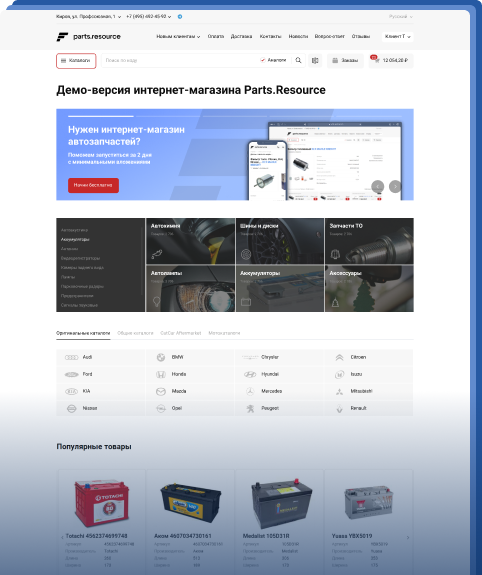 Организовали интернет-магазин автозапчастей «Parts.Resource». Это отличная платформа для расширения бизнеса! Все круто, классно! Сайт работает корректно и быстро. Техническая поддержка радует оперативными реакциями, на вопросы отвечают быстро и досконально, так что разобраться в нюансах работы с интернет-магазином не составляет труда.